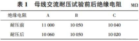 從耐壓試驗進程和表1絕緣電阻數據來看,該35kV 高壓充氣柜母線耐壓試驗合格。