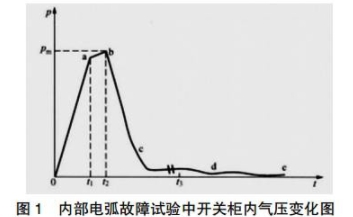 緊縮階段。0~t1時刻內,柜體內部發生電弧到泄壓設備通道口排出。設在t=0時柜體內部呈現強壯功率電弧,故障室內的壓力上升很快。內部故障電流越大,電弧電壓越高,隔內體積越小,則壓力上升越快。直到排氣口翻開,這一階段才完畢,繼續的時刻大約為5~10ms